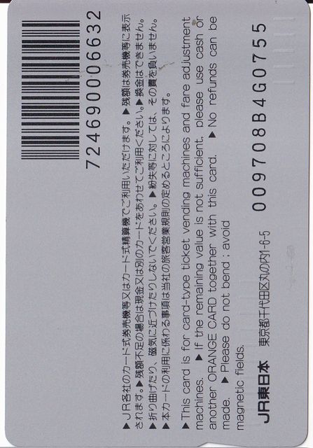 JR東日本管内で発売された「銀河鉄道999」オレンジカードを保管しています。
