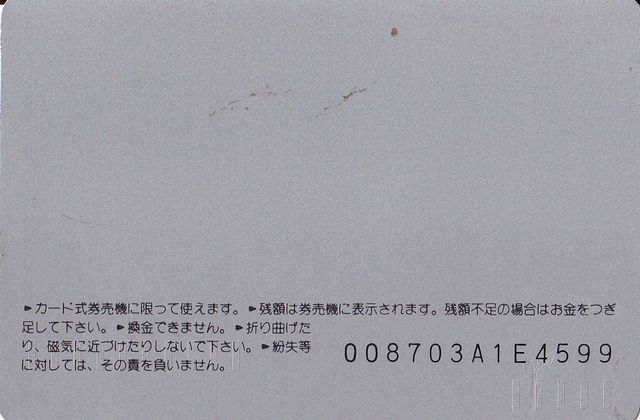 1987年4月1日のJR移行以前に発行されたもの。オレンジカード制度は1985年に開始され、キャラクター系カードが登場したのは1986年以降。