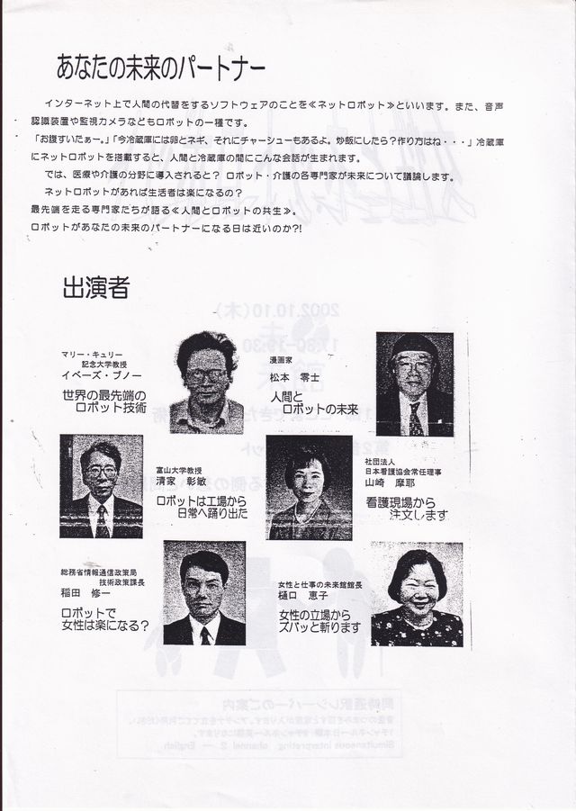 東京都港区にある女性と仕事の未来館で開催された「女性とネットロボット」講演会チラシを保管しています。