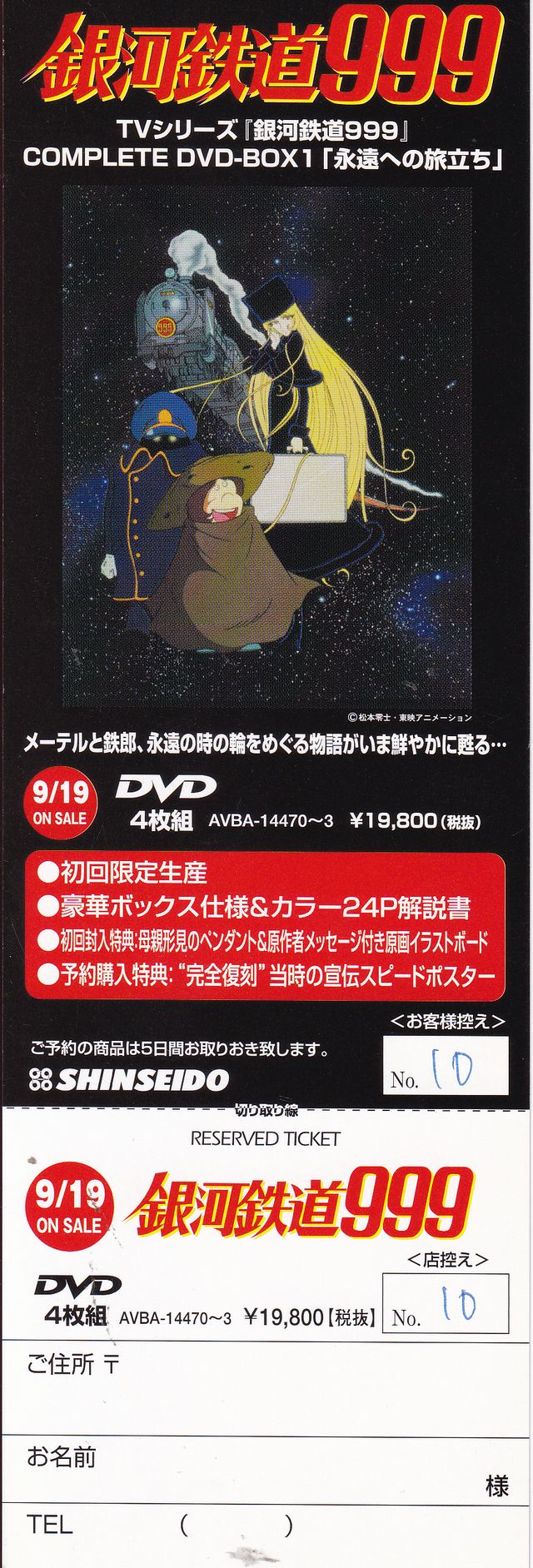 新星堂「TVシリーズ銀河鉄道999 COMPLETE DVD-BOX1 永遠への旅立ち」リザーブチケット