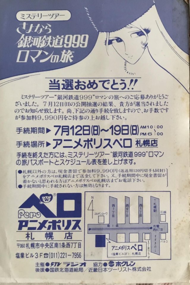 抽選の模様はSTVラジオ「サンデージャンボスペシャル」にて放送します。当選者にはハガキで本人に連絡します。また当日会場へお越しの方には、その場で申し込みを受付けます。当選者には参加料9,900円をご用意下さい。アンドロメダ行パスポート(乗車券)を差し上げます。 |
