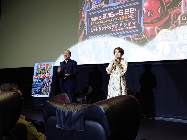 | 名古屋のミッドランドシネマスクエアの映画館にて「第2回どまんなかアニメ映画祭」が開催され、劇場版「さよなら銀河鉄道999-アンドロメダ終着駅-」の上映があり、トークゲストでメタルメナ役の麻上洋子さんが登場、当時の「銀河鉄道999」収録などエピソードをお話してくれました。 | |