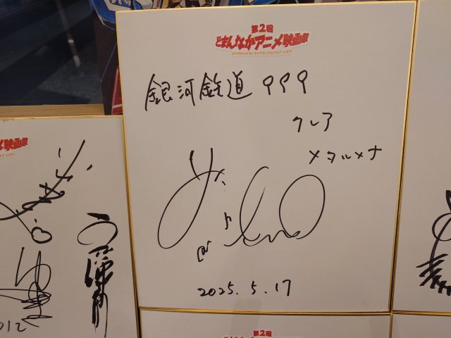 | 名古屋のミッドランドシネマスクエアの映画館にて「第2回どまんなかアニメ映画祭」が開催され、劇場版「さよなら銀河鉄道999-アンドロメダ終着駅-」の上映があり、トークゲストでメタルメナ役の麻上洋子さんが登場、当時の「銀河鉄道999」収録などエピソードをお話してくれました。 「さよなら銀河鉄道999-アンドロメダ終着駅-」の上映後、メタルメナ役の麻上洋子さん、インタビュアーの藤津亮太さんが舞台上に登場。当時のアフレコ状況、野沢雅子さん、池田昌子さん、肝付兼太さんの当時の様子や松本先生との思い出エピソードなどお話されました。 トークショーが終わると記念撮影タイムということで、来場されたお客様の撮影があってイベントはお開きとなりました。 トークショー終了後は、オフ会がありましてFacebook「銀河鉄道999」のグループ内の有志でオフ会企画が持ち上がり、私も久々にオフ会に参加してきました。Facebookの中ではやり取りをしていましたが、実際に集合して初対面の方ばかりで、私も知り合いをお誘いしての参加となりました。男女合わせて10人くらい集まりましたね。中には東京や京都からの参加者もいました。 幹事さん二人、999関係のオフ会主催は初めてということでしたが、いろいろ気遣いしていただきましてお土産付きでビックリもしましたが、楽しい時間を久々に過ごしました。幹事さんお疲れさまでした。