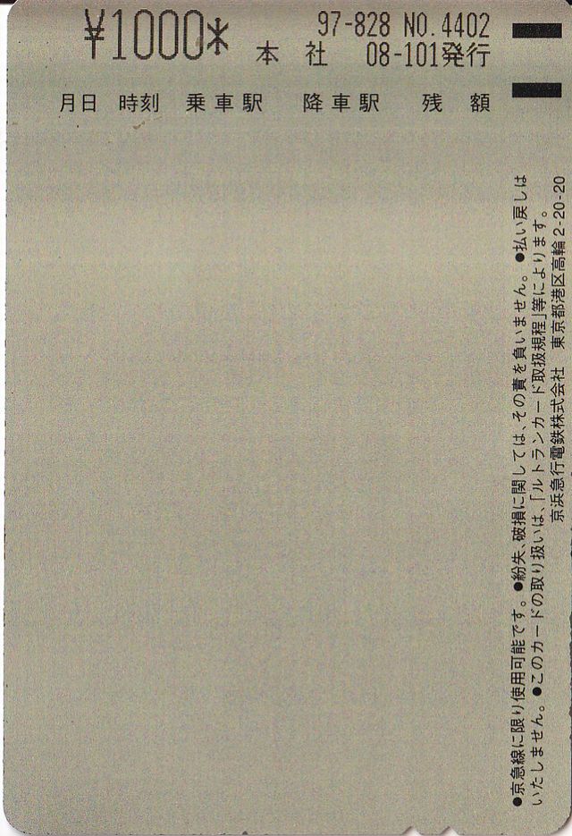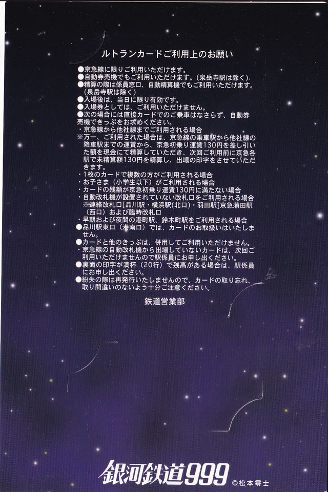 | 1997年(平成9年)に京浜急行電鉄が「銀河鉄道999」とコラボして発行した記念乗車カードを保管しています。 | |