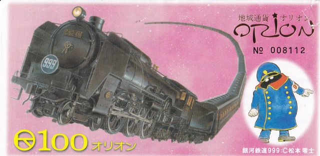 地域通貨オリオンは、たくさんの『銀河鉄道999』ファンにも愛される地域通貨です。 |
