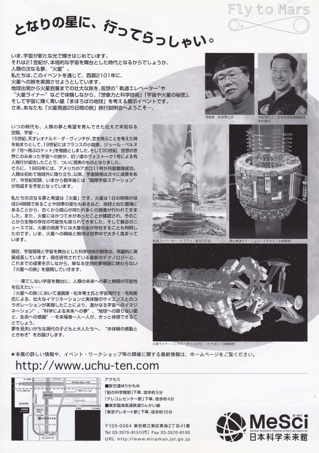 日本科学未来館で開催された「宇宙ロマン展 火星への旅」のチラシを保管しています。