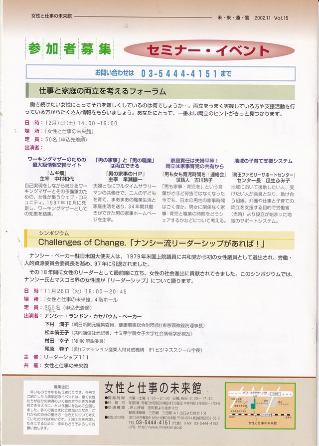 女性と仕事の未来館「未来通信 2002年11月 Vol.15」