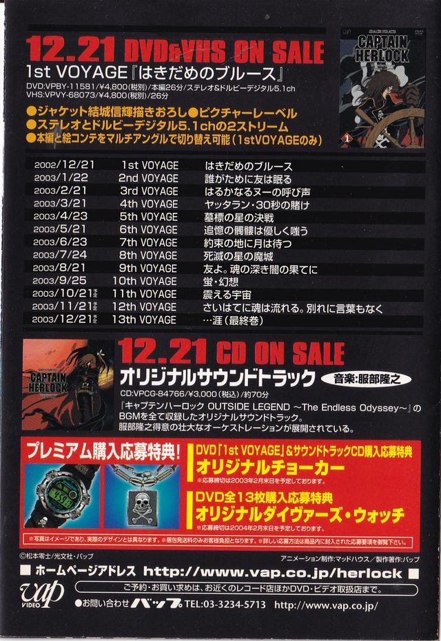| VAP「SPACE PIRATE CAPTAIN HERLOCK」DVD&VHS RELEASE START | |