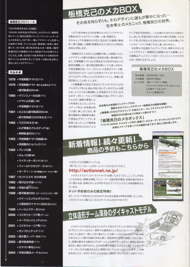 ブレイン・ストームから松本作品のメカニック担当の板橋克己先生の画集が2005年9月に発売予定だった宣伝チラシを保管しています。