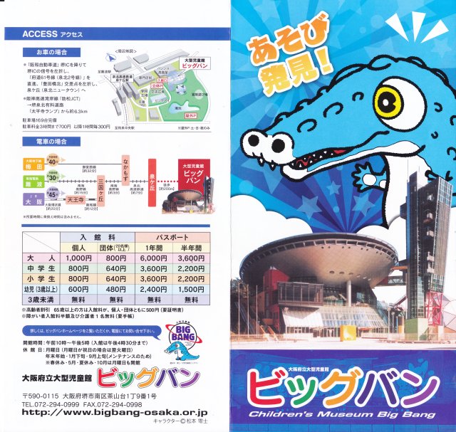 1999年(平成11年)に開館した大阪府立大型児童館ビッグバンのチラシを保管しています。(当時、松本先生は館長)