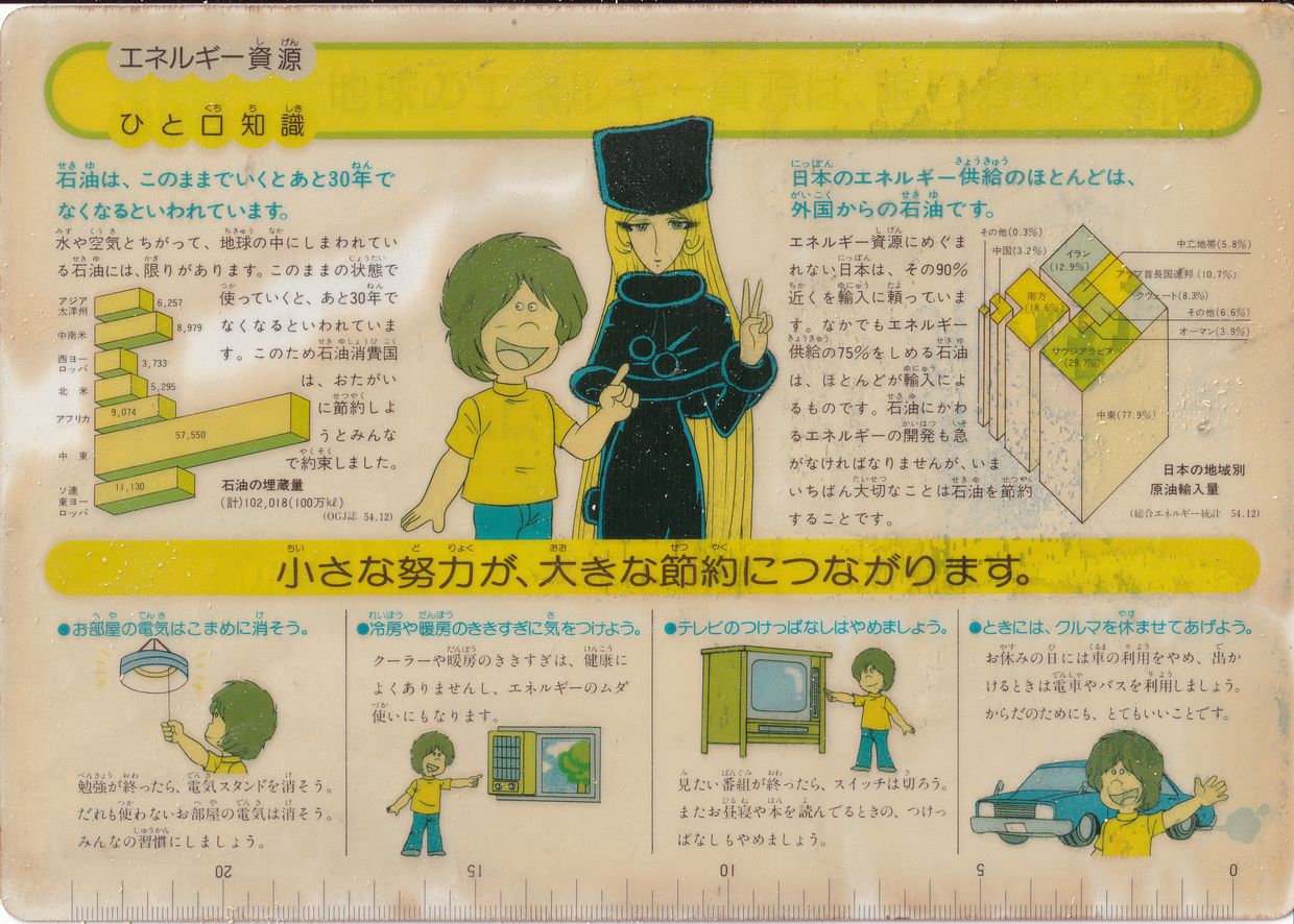資源エネルギー庁と「銀河鉄道999」がコラボした下敷きを保管しています。