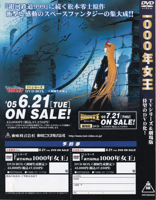 TOEI VIDEO「絶賛予約受付中!! 1000年女王 TVシリーズ&劇場版 待望のDVD化!!」