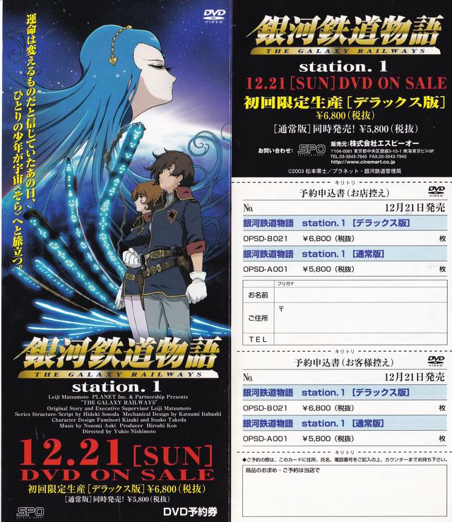 SPO「銀河鉄道物語 station.1 初回限定生産[デラックス版]・[通常版]DVD」予約申込書