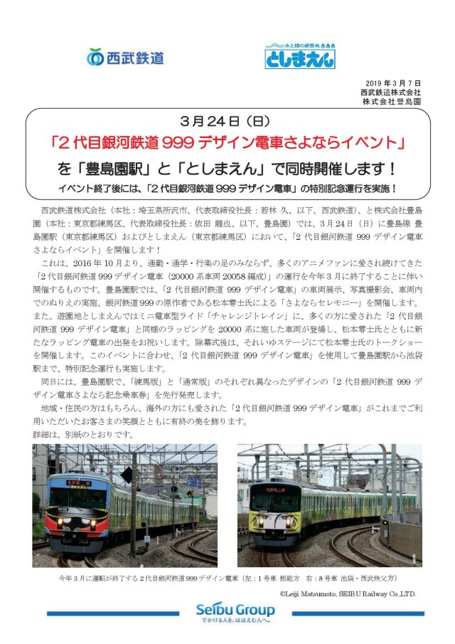 2019年03月24日 西武鉄道・豊島園「2代目銀河鉄道999デザイン電車さよならイベント」