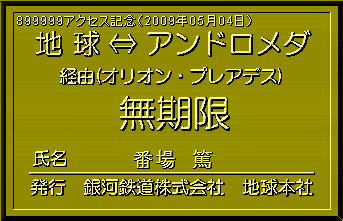 当社創立(1997年8月23日)以来、2009年05月04日で、899999アクセスを突破しました。見事記念すべき899999人目の方は、番場 篤さんでした。当社より記念の限定パス(名前入り)を発行し、ここに当社が倒産しない限り永久に展示いたします。