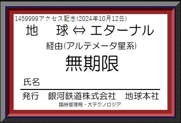 | 1459999アクセス記念(2024年10月12日) | 申告者無し |