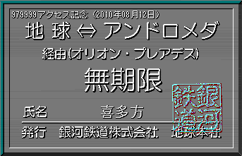 当社創立(1997年8月23日)以来、2010年08月12日で、979999アクセスを突破しました。見事記念すべき979999人目の方は、喜多方さんでした。当社より記念の限定パス(名前入り)を発行し、ここに当社が倒産しない限り永久に展示いたします。
